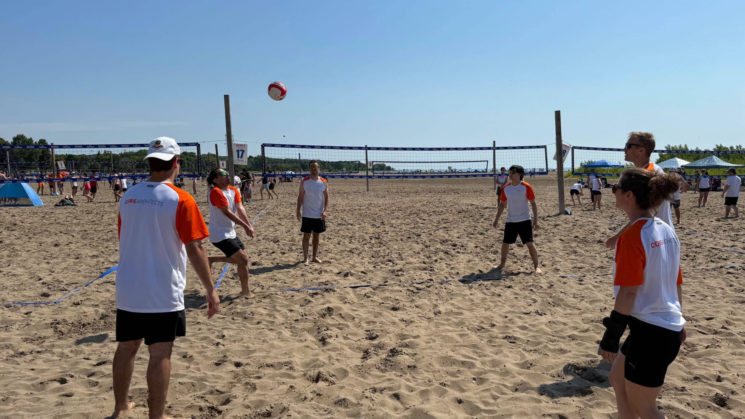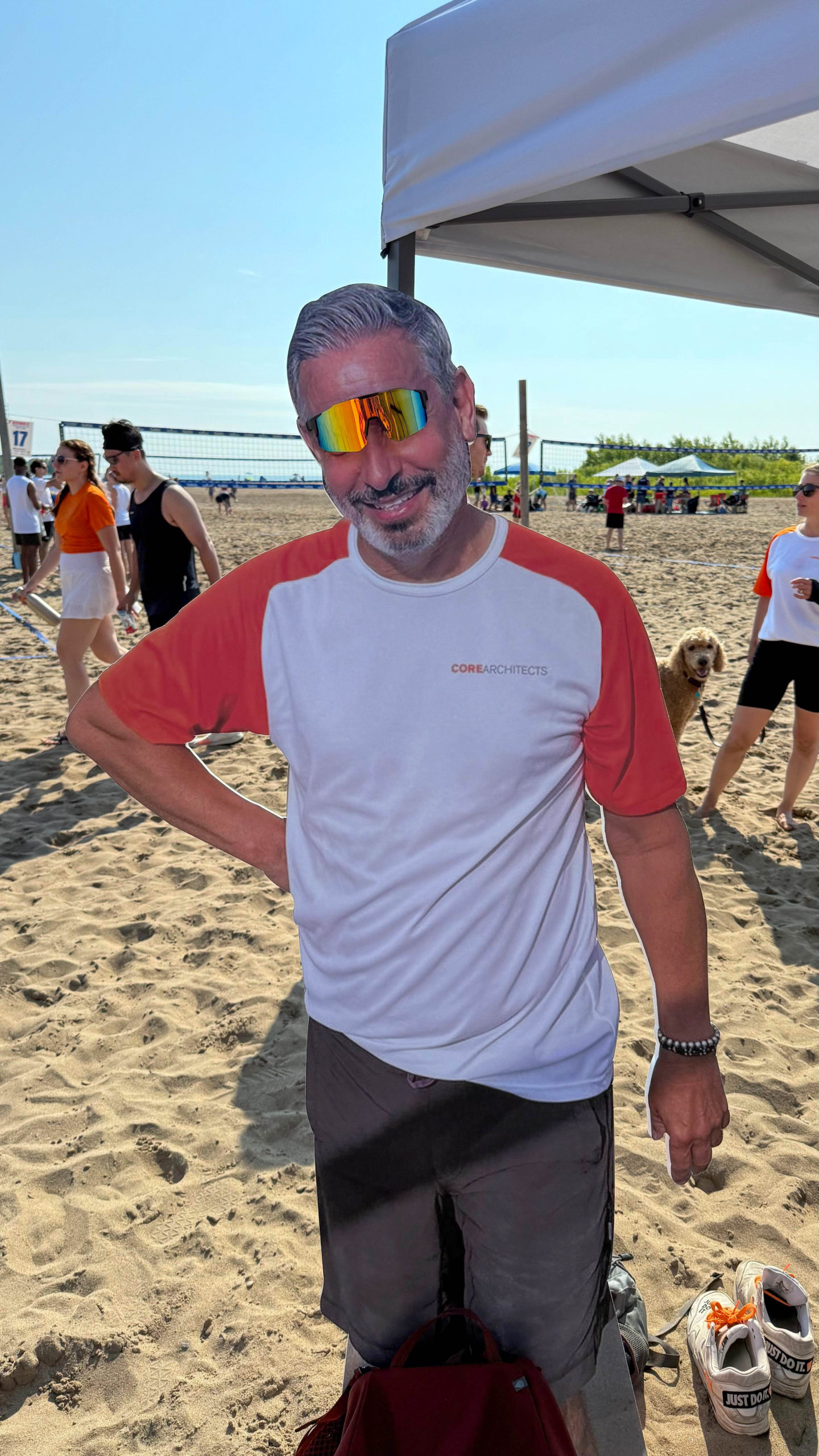 For the third consecutive year, CORE rallied to support SickKids by entering two teams into the beach volleyball tournament. The teams were captained by Partner Brian Laye and Project Manager Taylor Balodis, both bringing their competitive spirit and community passion to the sand. Although Principal Deni Poletti was unable to attend in person, he was still present in spirit and in cardboard, as a life-size cutout cheered the teams on from the sidelines.
