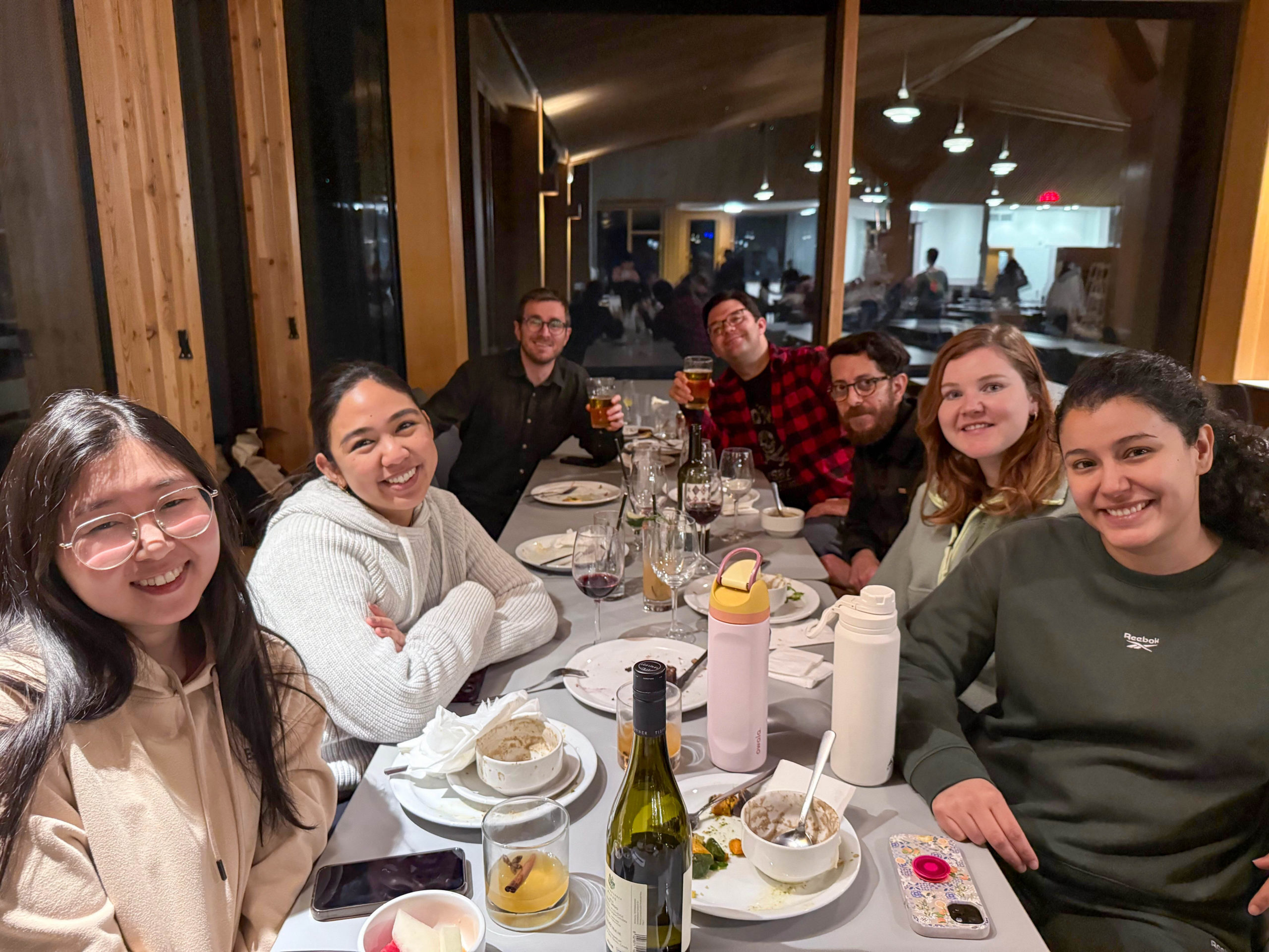As the day unfolded, colleagues crossed paths between runs and warmed up inside the lodge, enjoying lunch before heading back out for a few more afternoon runs. When the ski lifts closed at 4:00pm, the group gathered back at the chalet for après ski. Appetizers and drinks set the tone for a lively evening as stories from the slopes were exchanged and the evening continued with a sit-down dinner served at 5:30pm, providing the perfect opportunity to unwind and reconnect after a full day outdoors.